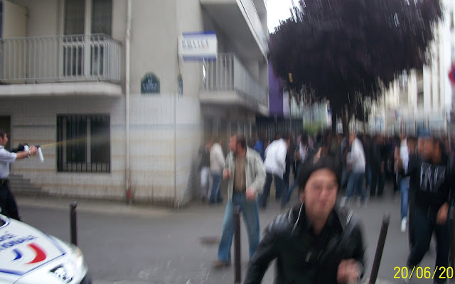 Et maintenant nous voilà rue de Belleville. Les manifestants chinois restants sont là pour la bagarre. Il a suffit que quelques uns d’entre eux se fassent arrêter par les forces de l’ordre pour que les autres exigent leur libération. Nous sommes désormais dans le cadre plus banal, d’un affrontement flics/casseurs. Les flics focalisent l’attention et l’hostilité de tous.